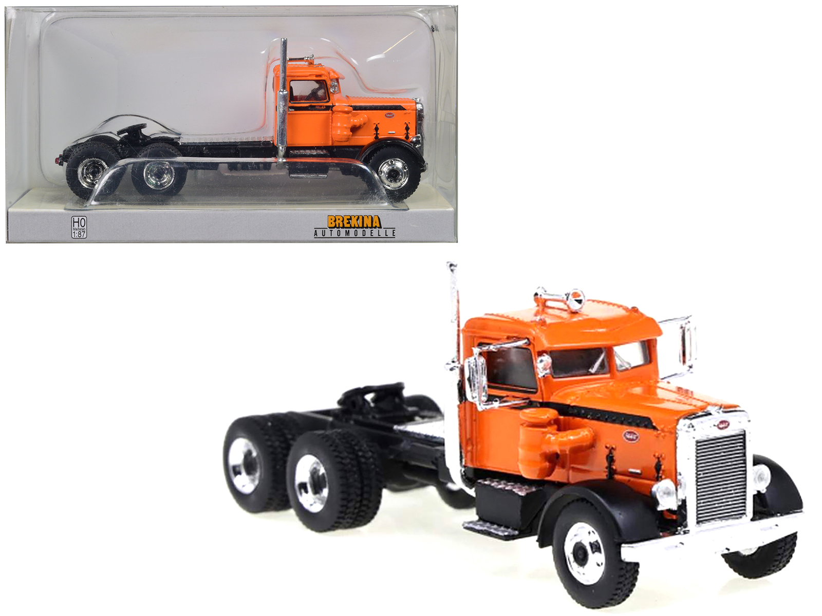 - Brand new 1/87 (HO) scale plastic car model of 1955 Peterbilt 281 Truck Tractor Orange with Black Stripes plastic model car by Brekina.