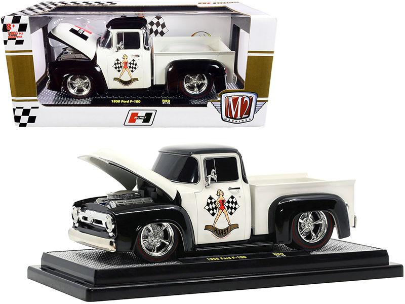 - Brand new 1/24 scale diecast car model of 1956 Ford F-100 Pickup Truck “Hurst” Wimbledon White and Black Limited Edition to 7000 pieces Worldwide die cast model car by M2 Machines.