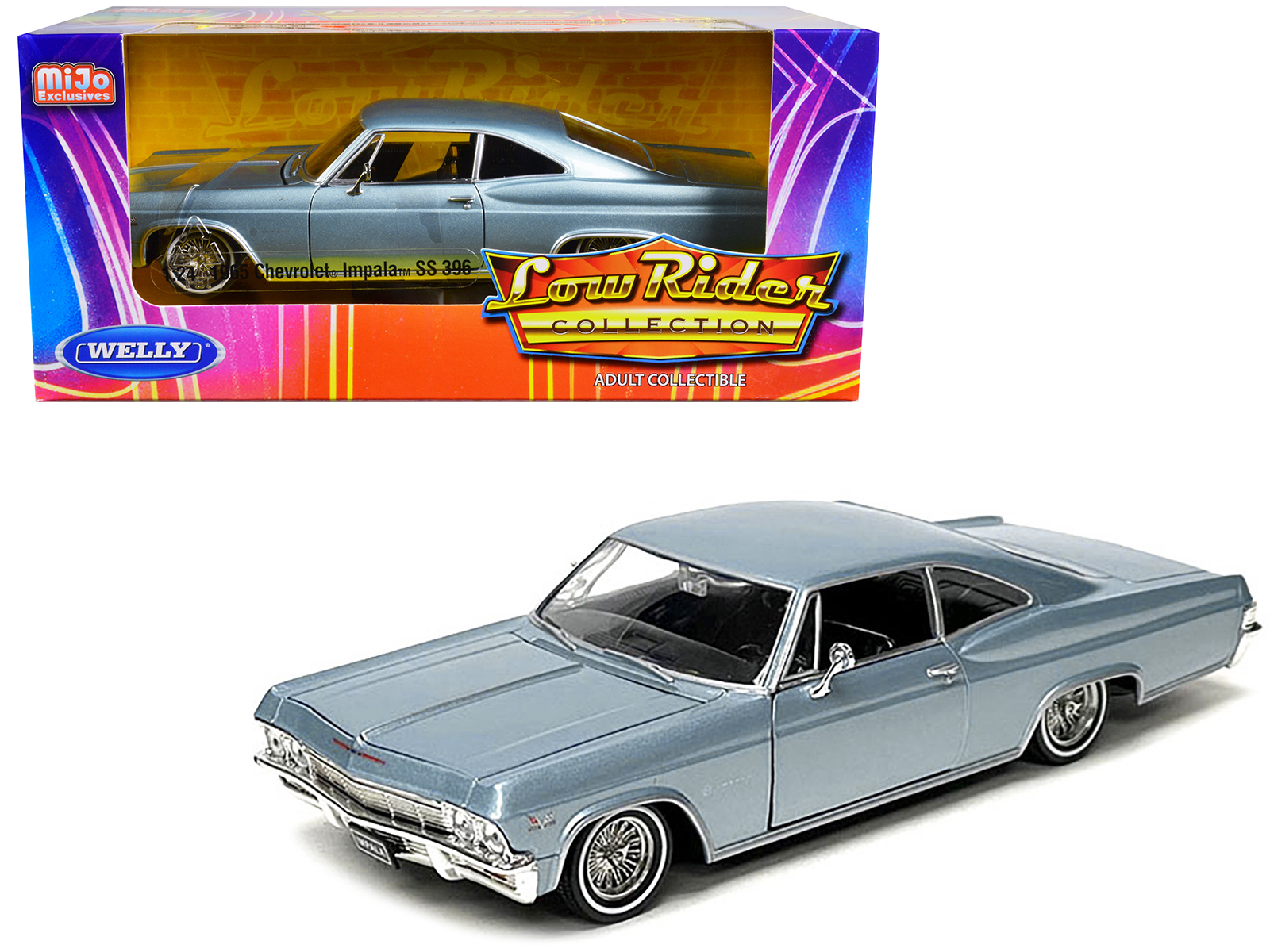 - Brand new 1/24 scale diecast car model of 1965 Chevrolet Impala SS 396 Lowrider Light Blue Metallic “Low Rider Collection” die cast model car by Welly.