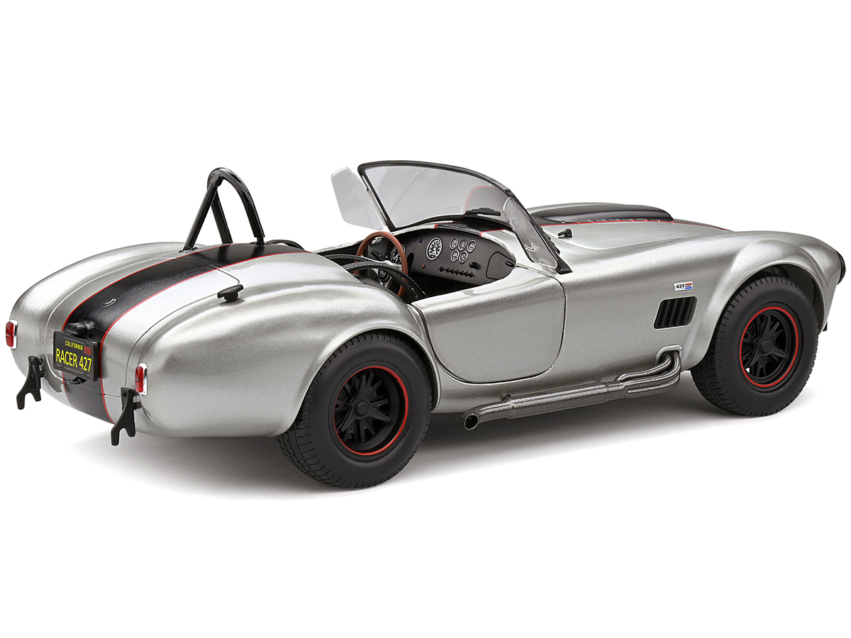 • Brand new 1/18 scale diecast car model of 1965 Shelby AC Cobra 427 MKII Custom Silver Metallic with Red and Black Stripes die cast model car by Solido.