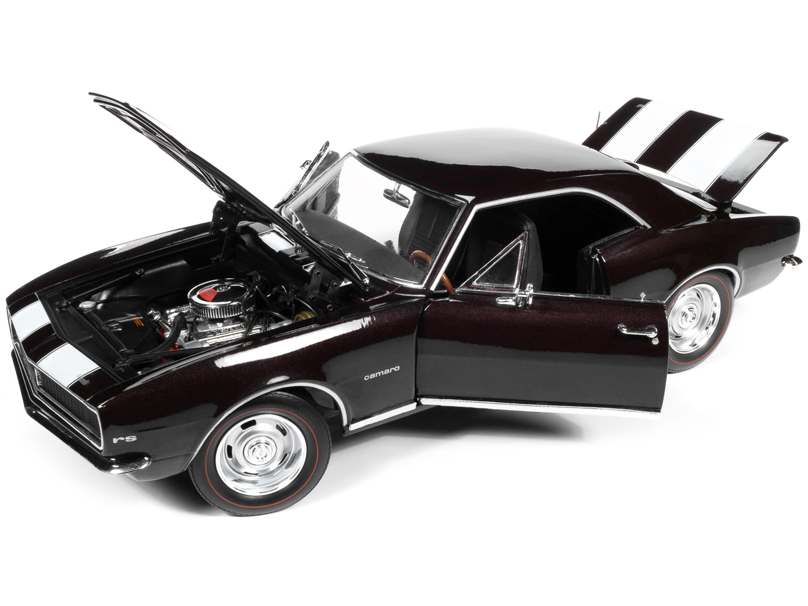 • Brand new 1/18 scale diecast car model of 1967 Chevrolet Camaro Z/28 Royal Plum with White Stripes “Muscle Car & Corvette Nationals” (MCACN) die cast model car by Auto World.