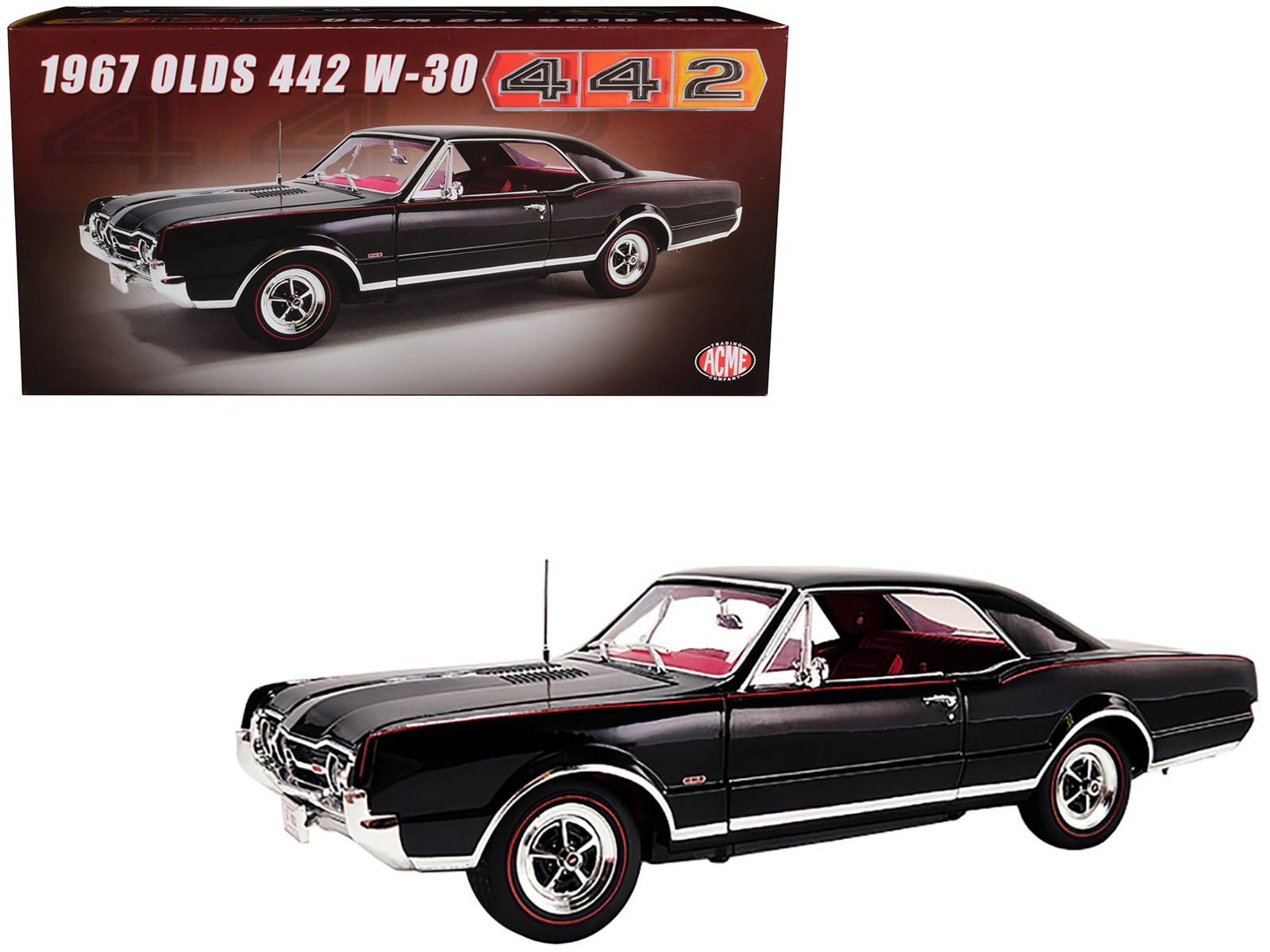 - Brand new 1/18 scale diecast car model of 1967 Oldsmobile 442 W-30 Ebony Black with Red Interior Limited Edition to 690 pieces Worldwide die cast model car by ACME.