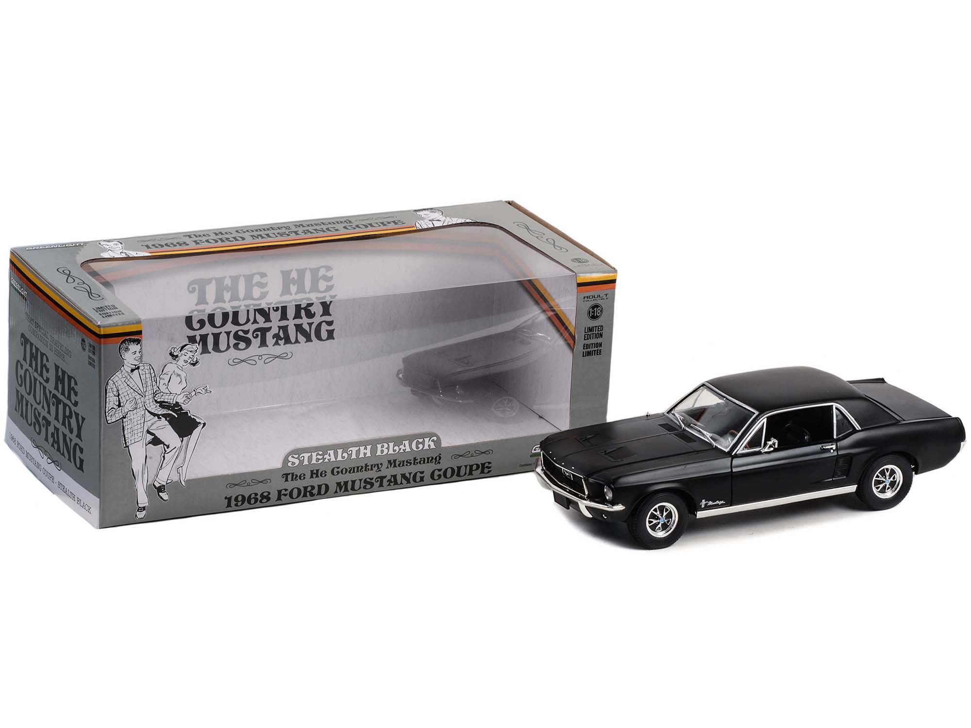 - Brand new 1/18 scale diecast car model of 1968 Ford Mustang Coupe Stealth Black “He Country Special – Bill Goodro Ford, Denver, Colorado” die cast model car by Greenlight.