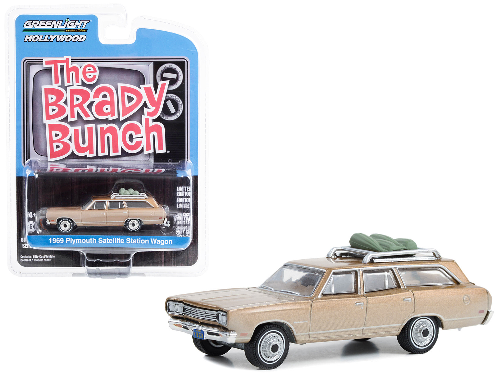- Brand new 1/64 scale diecast car model of 1969 Plymouth Satellite Station Wagon Gold Metallic with Rooftop Camping Equipment (Dirty Version) “The Brady Bunch” (1969-1974) TV Series “Hollywood Series” Release 39 die cast model car by Greenlight.