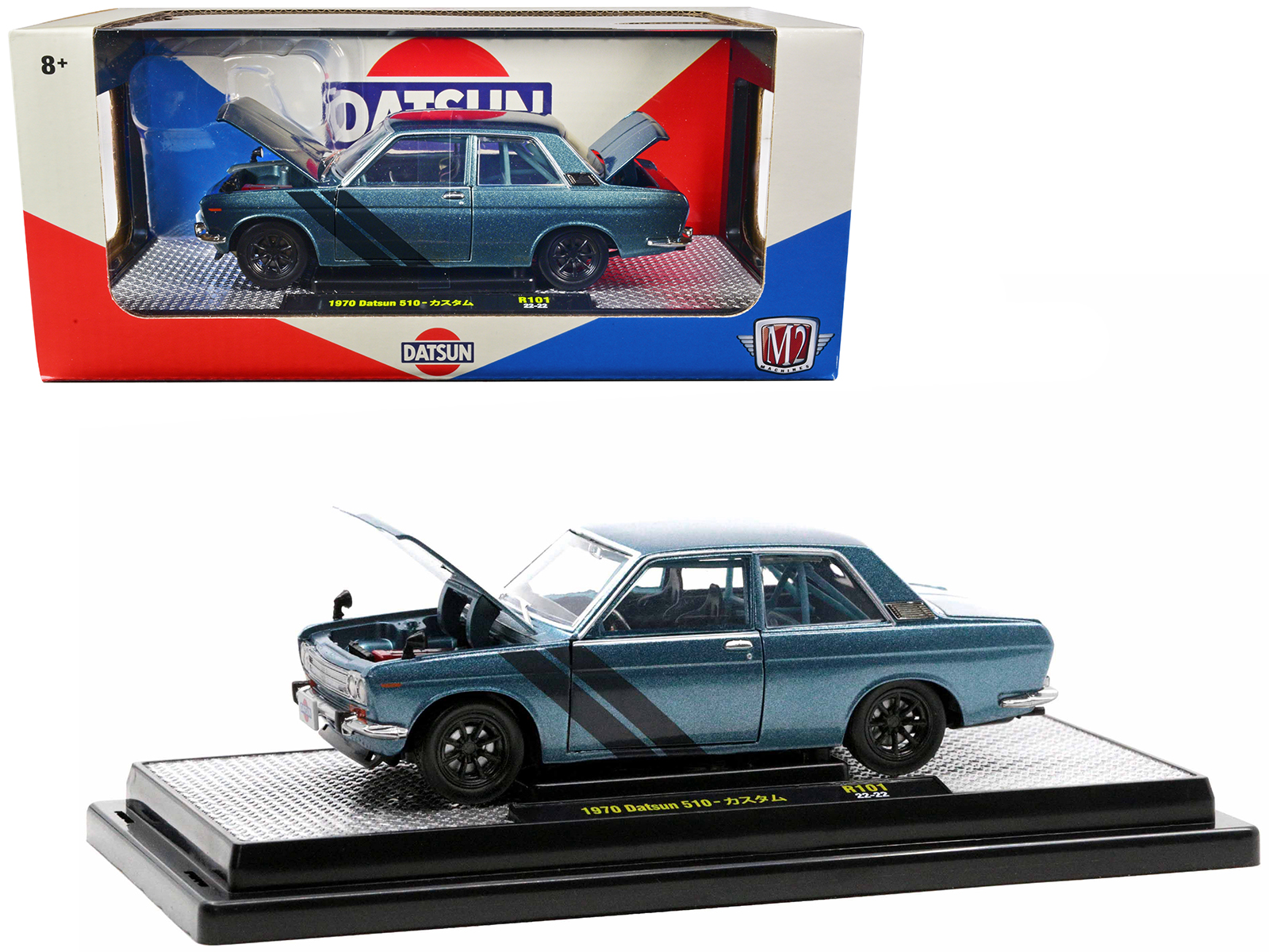 - Brand new 1/24 scale diecast car model of 1970 Datsun 510 Blue Metallic with Dark Blue Stripes Limited Edition to 3850 pieces Worldwide die cast model car by M2 Machines.