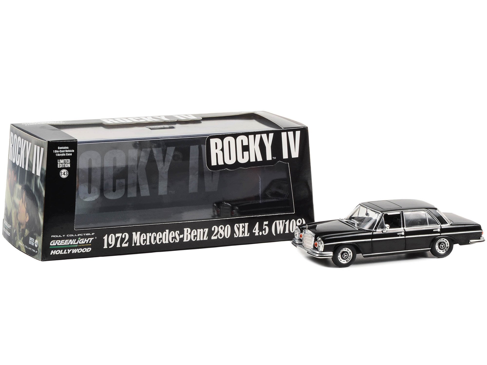 • Brand new 1/43 scale diecast car model of 1972 Mercedes-Benz 280 SEL 4.5 (W108) Black “Rocky IV” (1985) Movie “Hollywood” Series die cast model car by Greenlight.