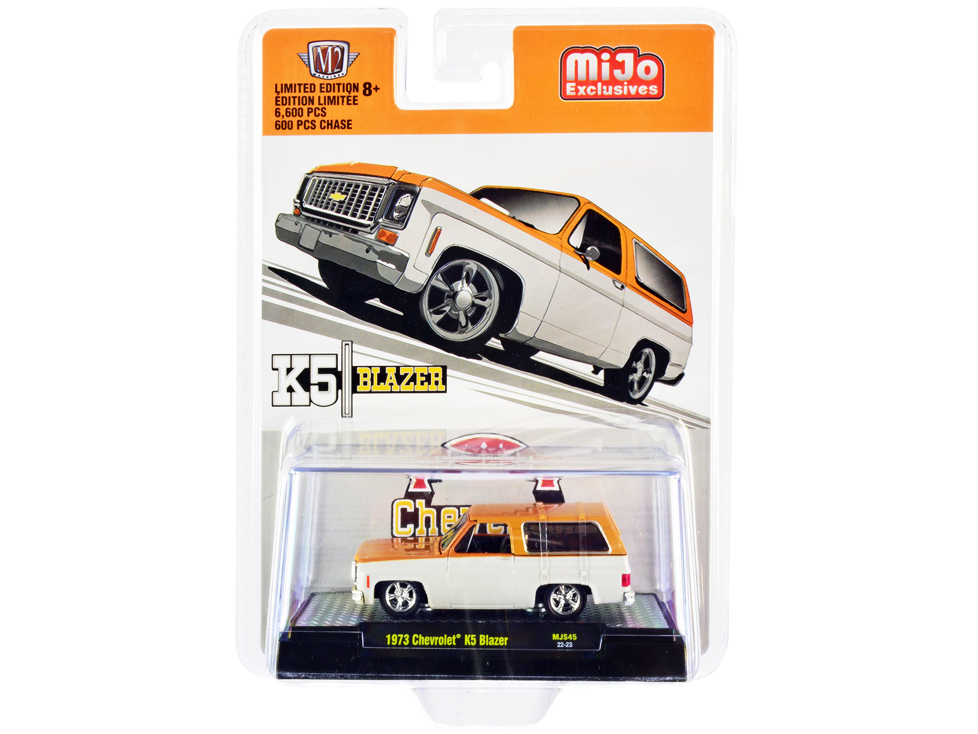 - Brand new 1/64 scale diecast car model of 1973 Chevrolet K5 Blazer Orange Metallic and White Metallic Limited Edition to 6600 pieces Worldwide die cast model car by M2 Machines.