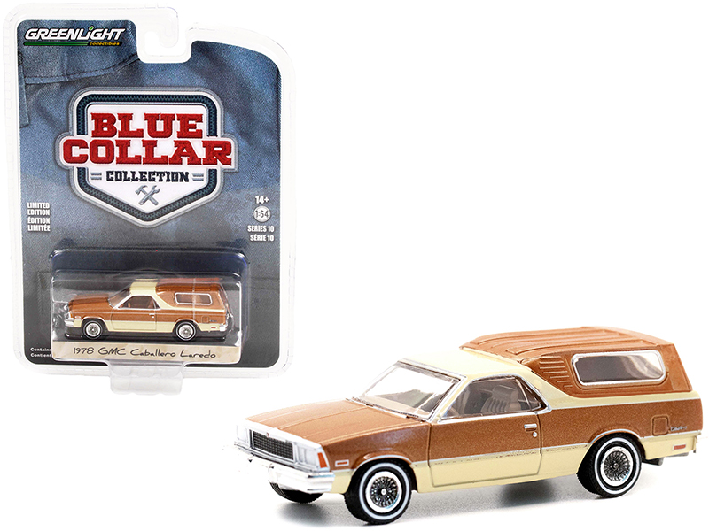 - Brand new 1/64 scale diecast car model of 1978 GMC Caballero Laredo with Camper Shell Brown Metallic and Cream “Blue Collar Collection” Series 10 die cast model car by Greenlight.