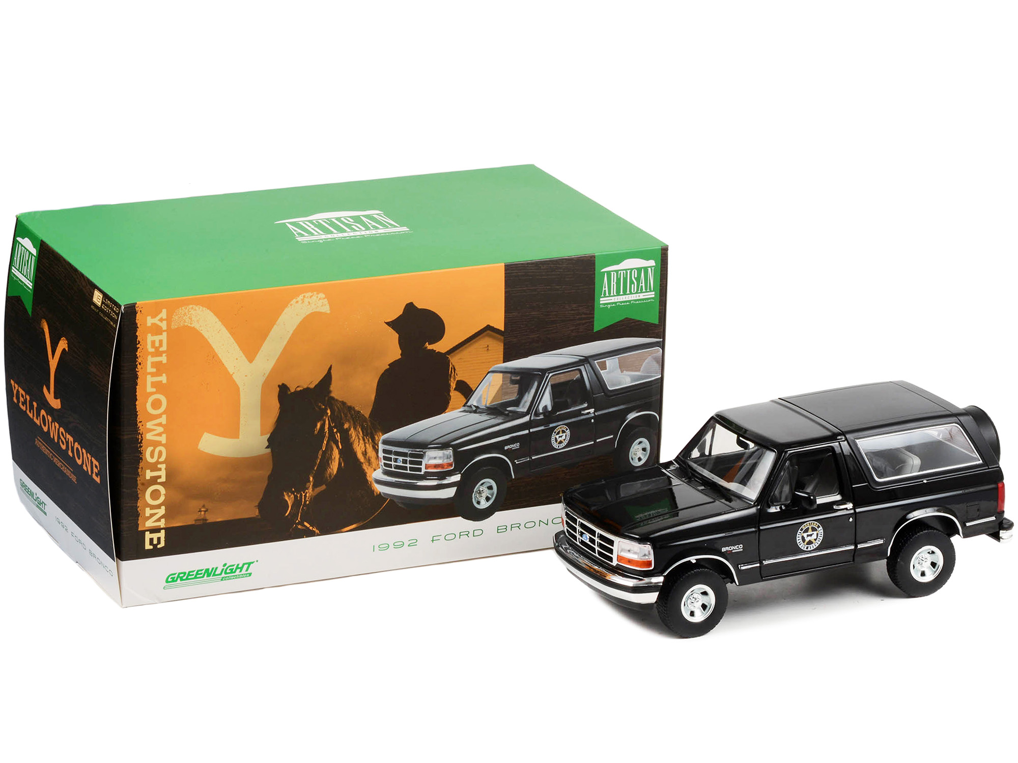 • Brand new 1/18 scale diecast car model of 1992 Ford Bronco Black “Montana Livestock Association” “Yellowstone” (2018-Current) TV Series “Artisan Collection” die cast model car by Greenlight.