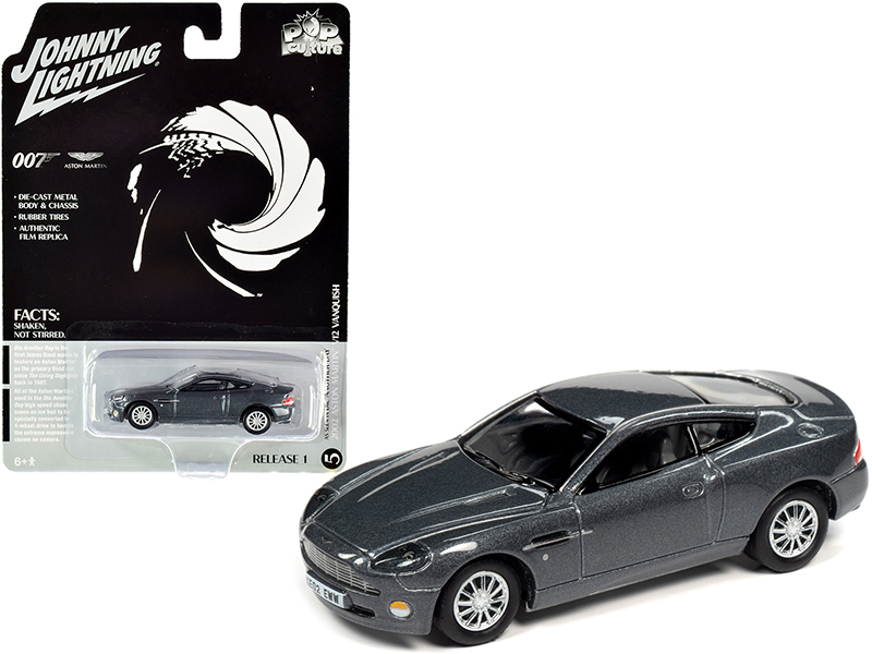 • Brand new 1/64 scale diecast car model of 2002 Aston Martin V12 Vanquish Gray Metallic (James Bond 007) “Die Another Day” (2002) Movie “Pop Culture” Series die cast model car by Johnny Lightning.