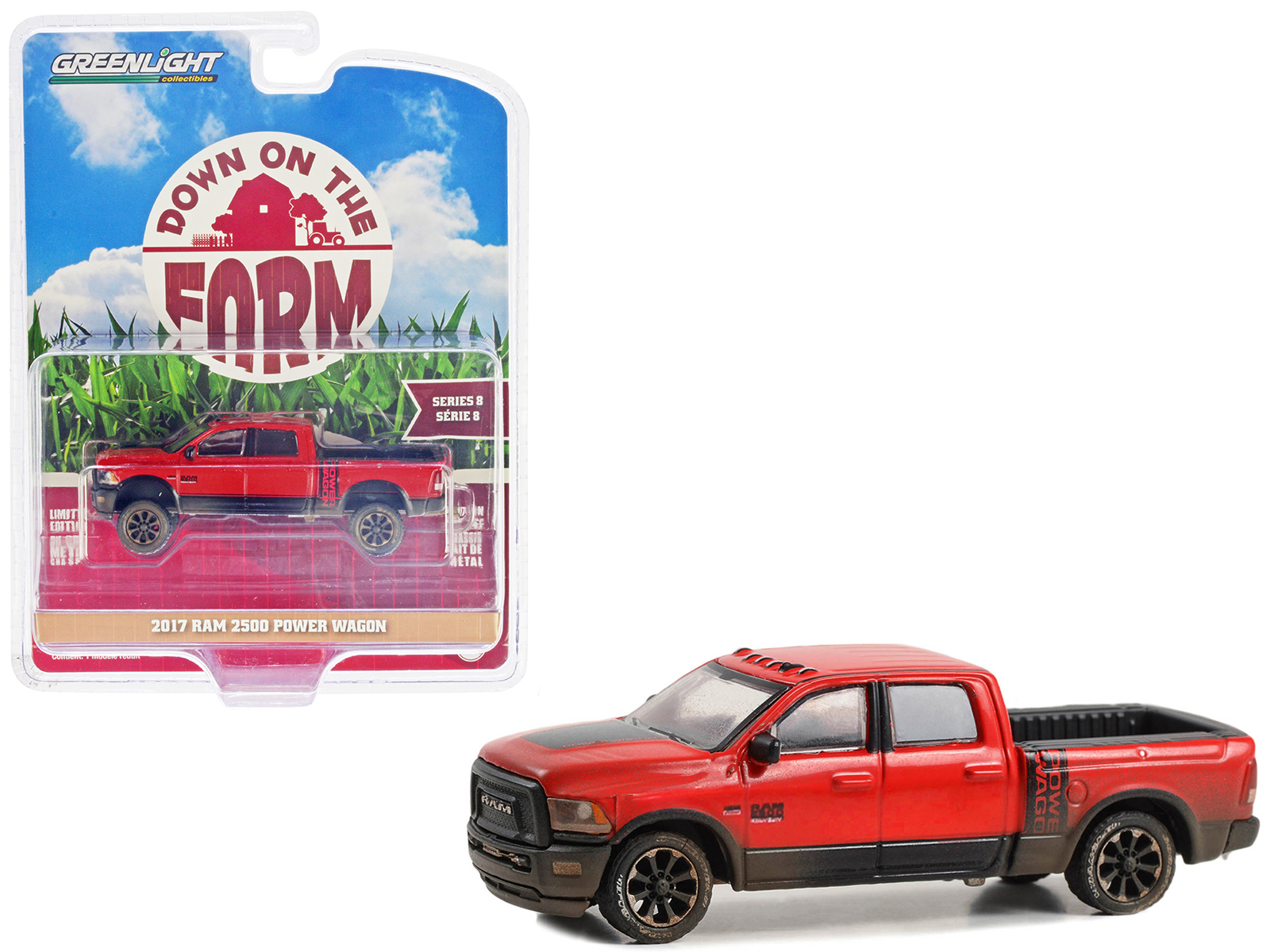 - Brand new 1/64 scale diecast model of 2017 Ram 2500 Power Wagon Pickup Truck Red with Mud Splatter “Down on the Farm” Series 8 die cast model by Greenlight.