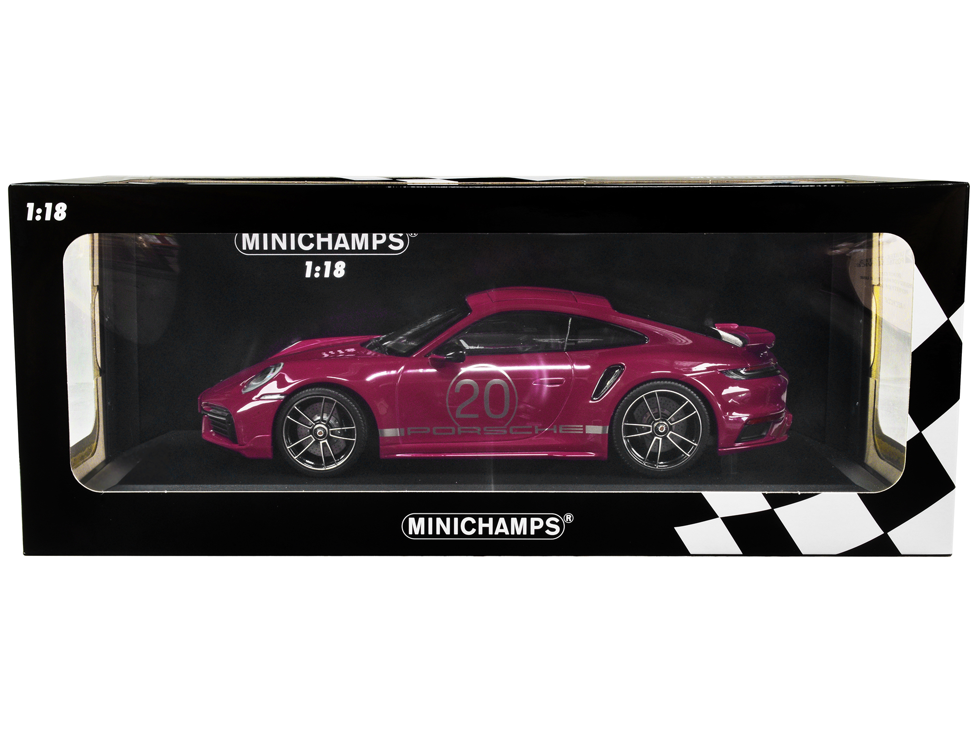 - Brand new 1/18 scale diecast car model of 2021 Porsche 911 Turbo S with SportDesign Package #20 Red Violet with Silver Stripes Limited Edition to 504 pieces Worldwide die cast model car by Minichamps.
