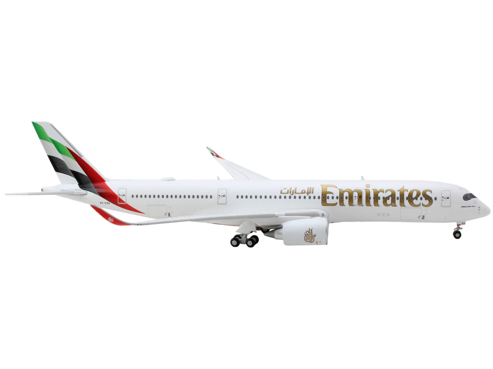 - Brand new 1/400 scale diecast airplane model of Airbus A350-900 Commercial Aircraft “Emirates Airlines” White with Striped Tail die cast model by GeminiJets.