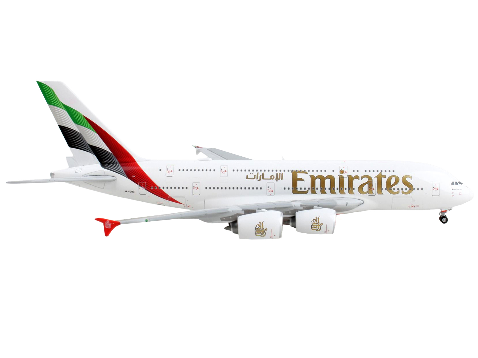 • Brand new 1/400 scale diecast airplane model of Airbus A380-800 Commercial Aircraft “Emirates Airlines” White with Tail Stripes die cast model by GeminiJets.