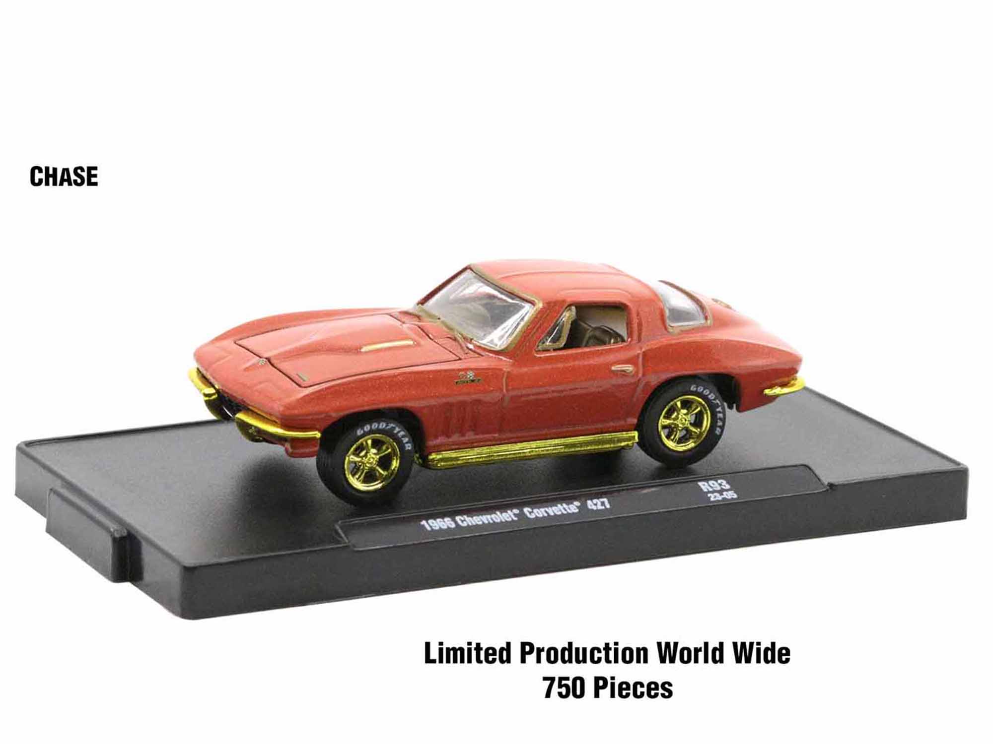 - CHASE CAR: 1966 Chevrolet Corvette 427. The Body is High Voltage Orange Metallic, The Interior is Black, The Bumpers, and Rims are Gold Chrome, The Trim is Gold. Since this is a CHASE CAR: All the Trim, Bumpers & Rims are now Gold Chrome, Interior is Gold. Limited Edition to 750 pieces Worldwide.