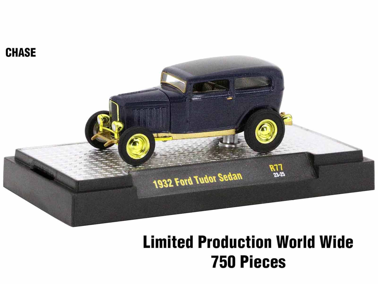 - CHASE CAR: 1932 Ford Tudor Sedan. The Body is Dark Blue Metallic, The Chassis is Gold, The Interior is Gold. Since this is a Chase Car: All the Trim, Rims are now Gold Chrome, The Interior & Chassis is Now Gold. Limited Edition to 750 pieces Worldwide.