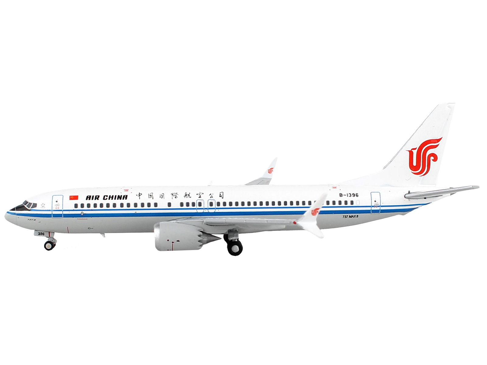 - Brand new 1/400 scale diecast airplane model of Boeing 737 MAX 8 Commercial Aircraft “Air China” White with Blue Stripes die cast model by GeminiJets.