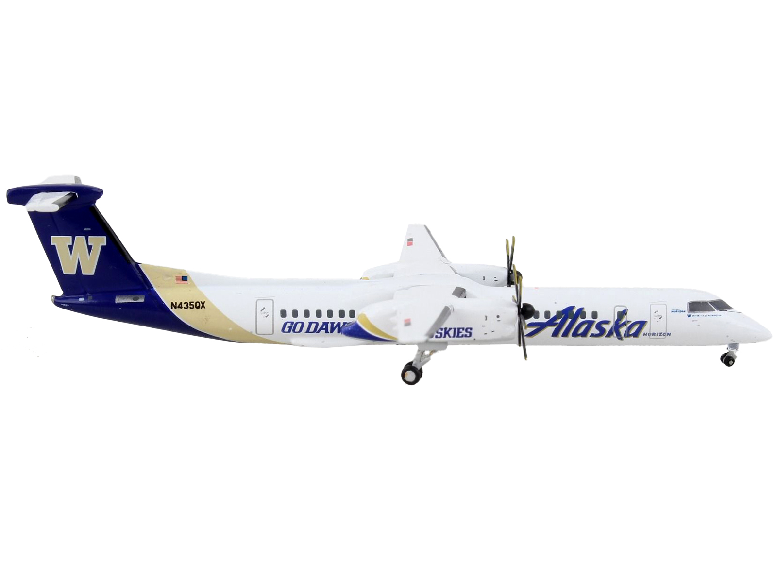 - Brand new 1/400 scale diecast airplane model of Bombardier Q400 Commercial Aircraft “Alaska Airlines – University of Washington Huskies” White with Purple and Gold Tail die cast model by GeminiJets.