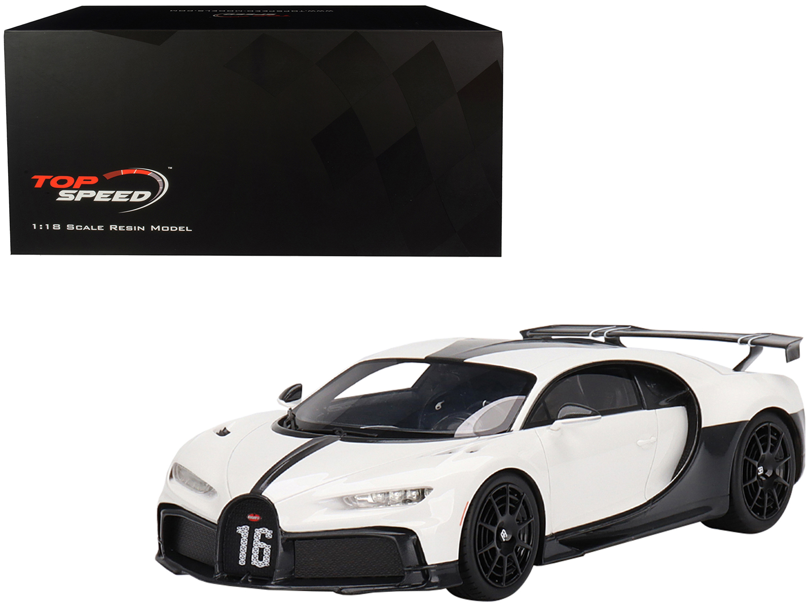 • Brand new 1/18 scale car model of Bugatti Chiron Pur Sport White and Black model car by Top Speed.