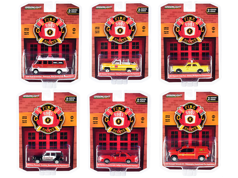 - Brand new 1/64 scale diecast car models of “Fire & Rescue” Set of 6 pieces Series 2 die cast model cars by Greenlight.