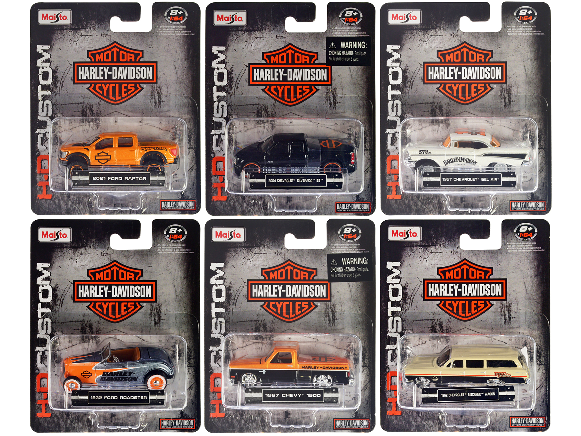 - Brand new 1/64 scale diecast car models of Harley Davidson Assortment (2023) Set of 6 pieces die cast model cars by Maisto.