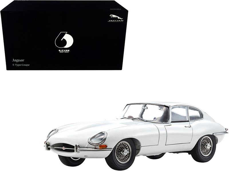 - Brand new 1/18 scale diecast car model of Jaguar E-Type Coupe RHD (Right Hand Drive) White “E-Type 60th Anniversary” (1961-2021) die cast model car by Kyosho.