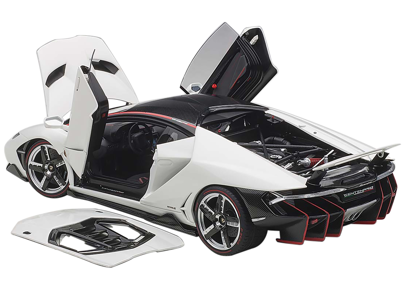 - Brand new 1/18 scale car model of Lamborghini Centenario Bianci Isis / Solid White with Carbon Top model car by Autoart.