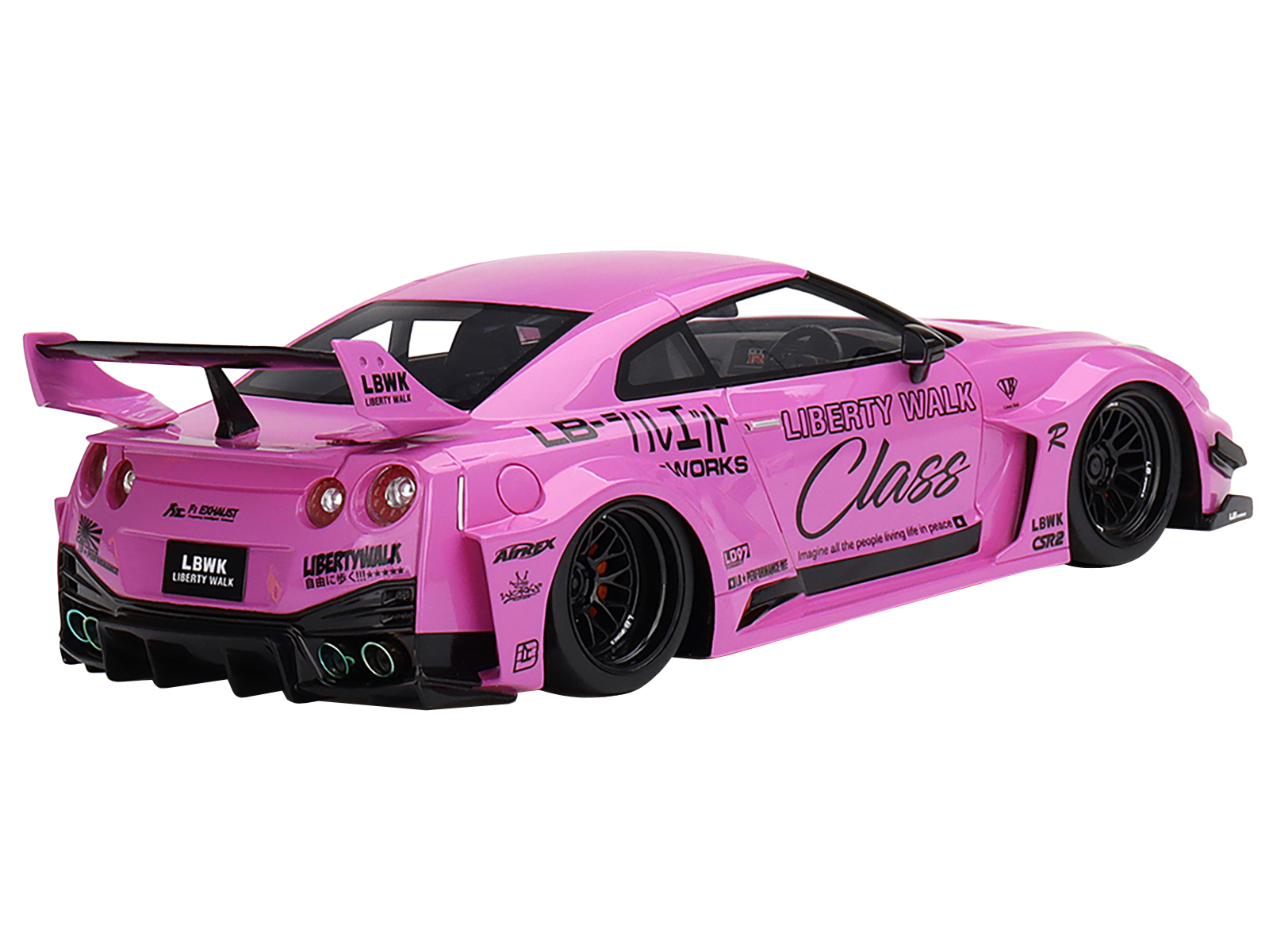 - Brand new 1/18 scale car model of Nissan 35GT-RR Ver. 1 LB-Silhouette Works GT RHD (Right Hand Drive) “Class” Pink with Graphics model car by Top Speed.