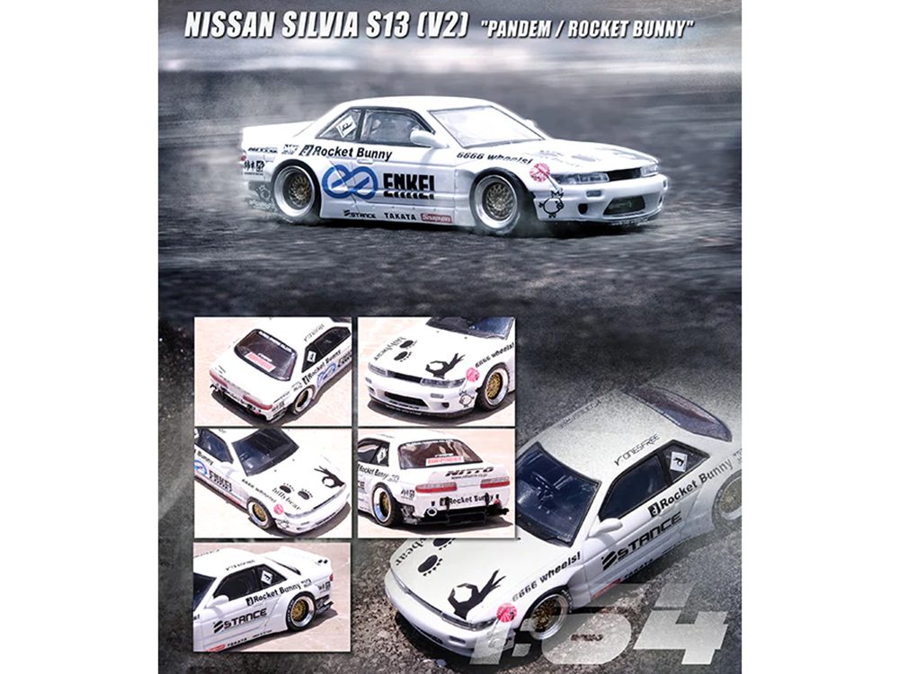 - Brand new 1/64 scale diecast car model of Nissan Silvia S13 (V2) RHD (Right Hand Drive) White “Pandem – Rocket Bunny” die cast model car by Inno Models.