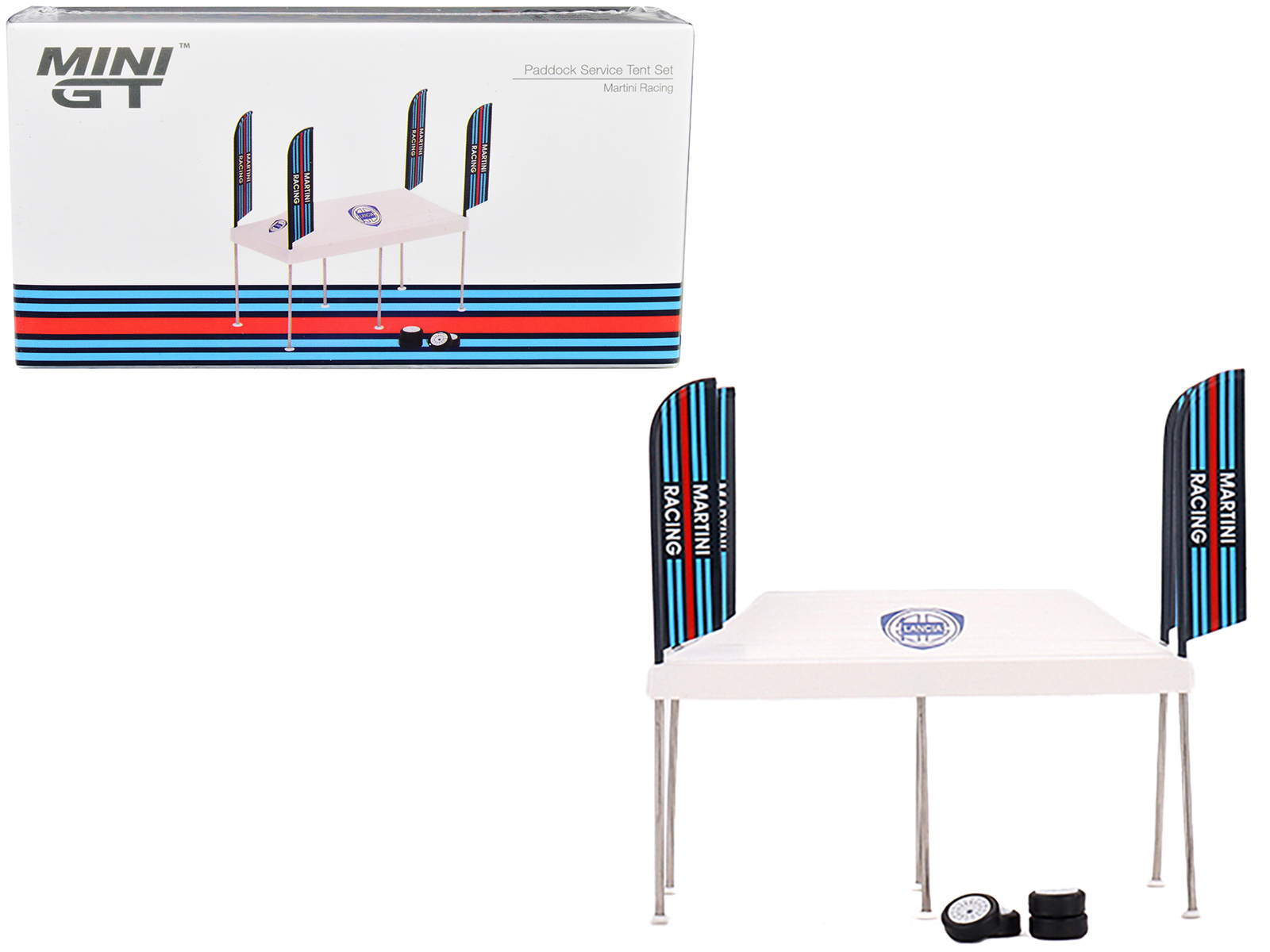 • Brand new 1/64 scale diecast models of Paddock Service Tent Set with Extra Wheels “Martini Racing” for 1/64 scale models by True Scale Miniatures.