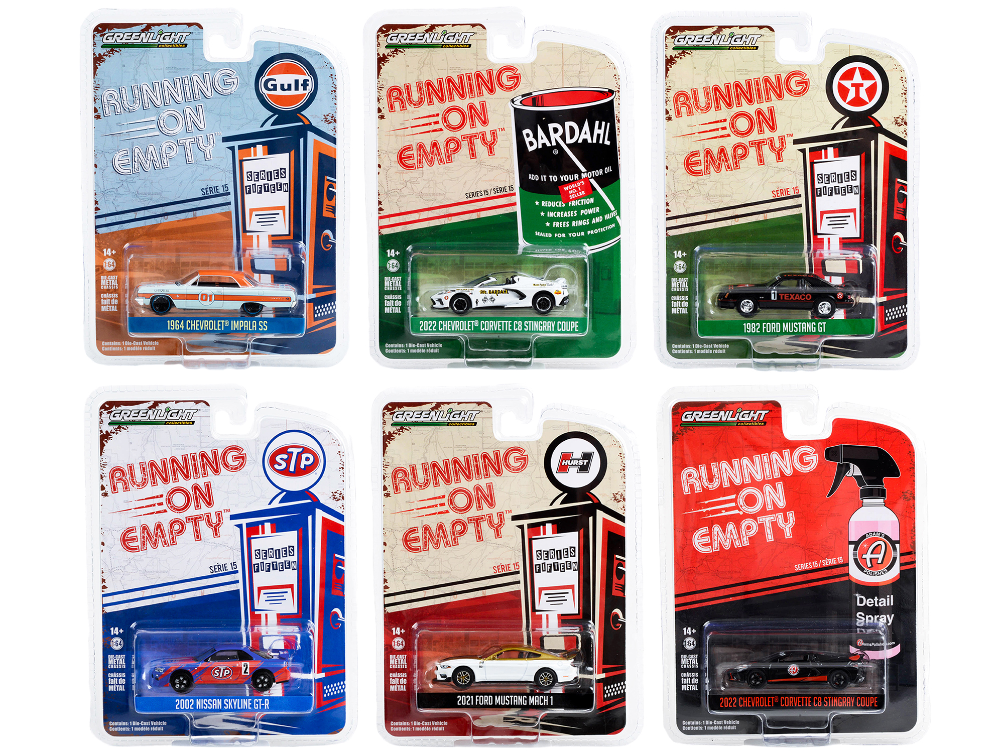 • Brand new 1/64 scale diecast car models of “Running on Empty” 6 piece Set Series 15 die cast model cars by Greenlight.