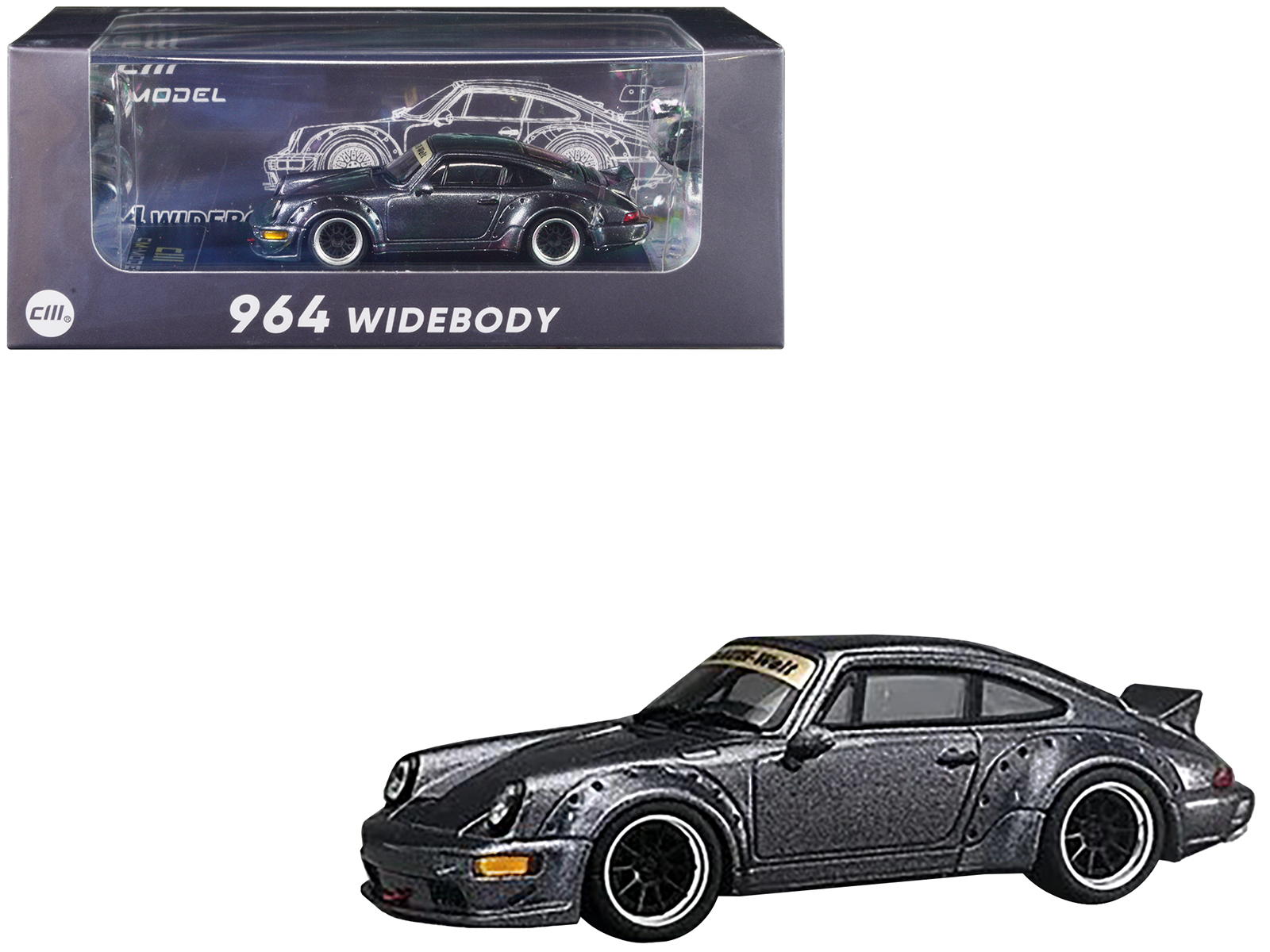 - Brand new 1/64 scale diecast car model of RWB 964 Gray Metallic with Extra Wheels die cast model car by CM Models.