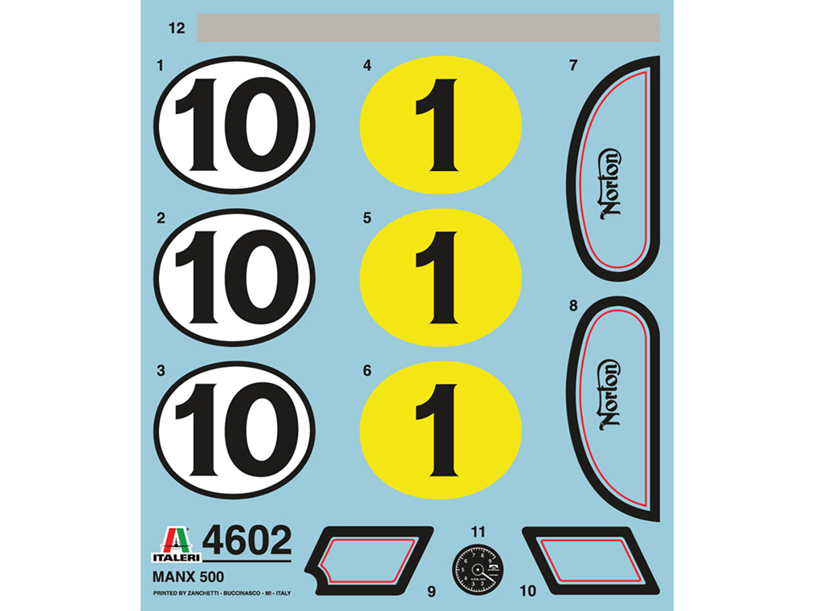 - Brand new 1/9 scale plastic model kit of Norton Manx 500cc Motorcycle #1 “World Champion 1950 to 1951” (Skill 5) 1/9 plastic model kit by Italeri.