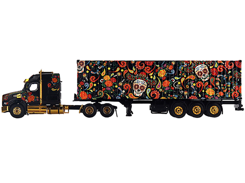- Brand new 1/64 scale diecast model of Western Star 49X with 40 Ft Container “Dia de los Muertos” (Day of the Dead) Black with Graphics die cast model by True Scale Miniatures.